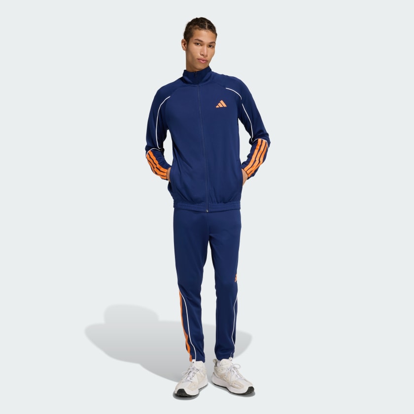 Este agasalho da adidas dá um toque novo a um dos looks mais versátil e acessíveis da moda esportiva. Perfeito para os dias em que o conforto é essencial, fica ótimo com seus tênis favoritos para um visual com inspiração esportiva. Use-o como um conjunto ou misture e combine a jaqueta e a calça com o restante do seu guarda-roupa para obter infinitas possibilidades de looks. As Três Listras assinatura na parte inferior das pernas mostram o orgulho que você tem da adidas.